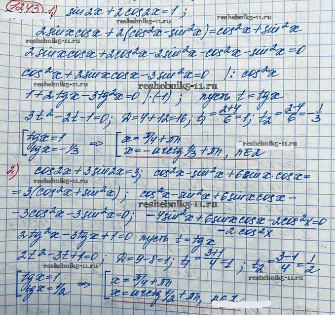 Готовая домашняя работа с ответами по Алгебре за 10 класс Колягин, Ткачёва, Федорова, Шабунин Учебник Базовый и углубленный уровень Просвещение 2017 ФГОС - Упражнения 1243