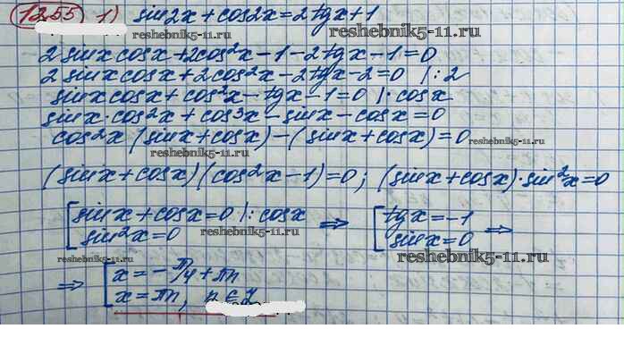 Готовая домашняя работа с ответами по Алгебре за 10 класс Колягин, Ткачёва, Федорова, Шабунин Учебник Базовый и углубленный уровень Просвещение 2017 ФГОС - Упражнения 1255