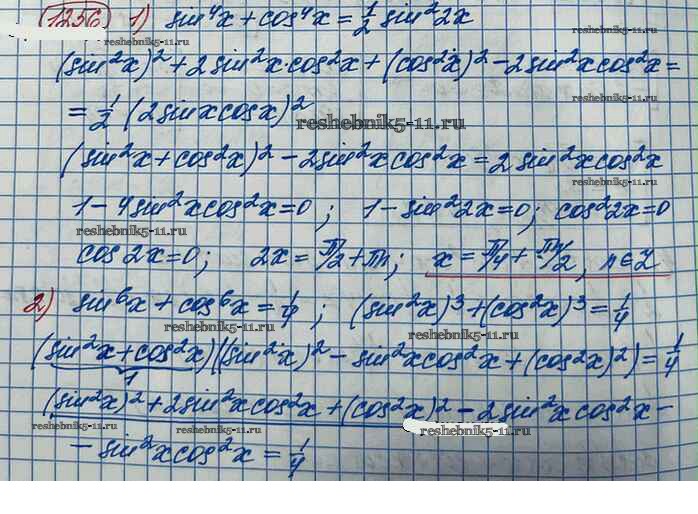 Готовая домашняя работа с ответами по Алгебре за 10 класс Колягин, Ткачёва, Федорова, Шабунин Учебник Базовый и углубленный уровень Просвещение 2017 ФГОС - Упражнения 1256
