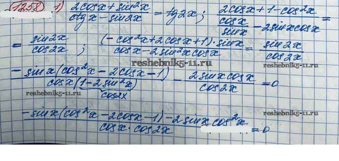 Готовая домашняя работа с ответами по Алгебре за 10 класс Колягин, Ткачёва, Федорова, Шабунин Учебник Базовый и углубленный уровень Просвещение 2017 ФГОС - Упражнения 1258