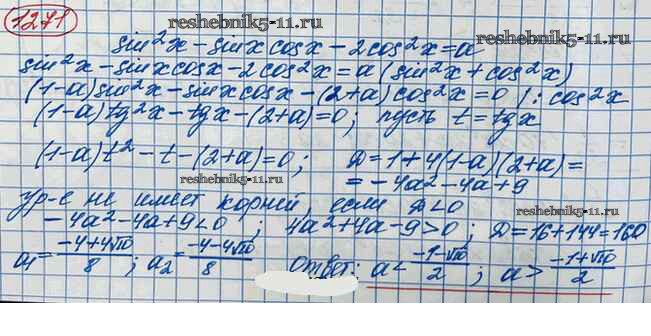 Готовая домашняя работа с ответами по Алгебре за 10 класс Колягин, Ткачёва, Федорова, Шабунин Учебник Базовый и углубленный уровень Просвещение 2017 ФГОС - Упражнения 1271