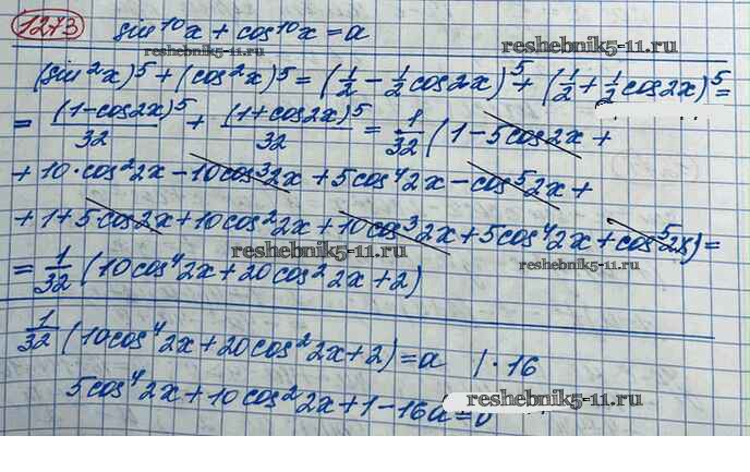 Готовая домашняя работа с ответами по Алгебре за 10 класс Колягин, Ткачёва, Федорова, Шабунин Учебник Базовый и углубленный уровень Просвещение 2017 ФГОС - Упражнения 1273