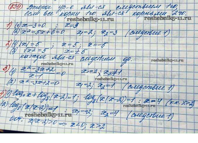Готовая домашняя работа с ответами по Алгебре за 10 класс Колягин, Ткачёва, Федорова, Шабунин Учебник Базовый и углубленный уровень Просвещение 2017 ФГОС - Упражнения 839