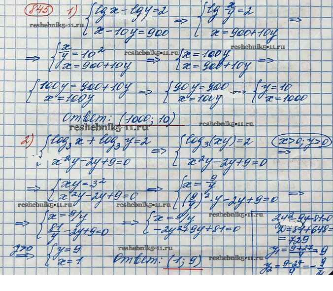 Готовая домашняя работа с ответами по Алгебре за 10 класс Колягин, Ткачёва, Федорова, Шабунин Учебник Базовый и углубленный уровень Просвещение 2017 ФГОС - Упражнения 845
