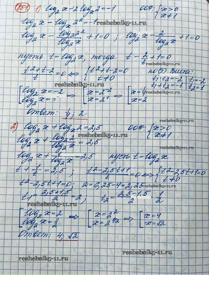 Готовая домашняя работа с ответами по Алгебре за 10 класс Колягин, Ткачёва, Федорова, Шабунин Учебник Базовый и углубленный уровень Просвещение 2017 ФГОС - Упражнения 851
