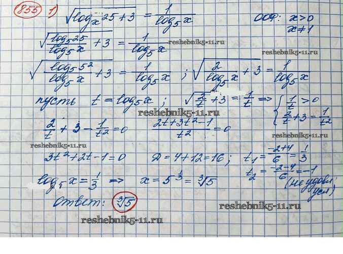 Готовая домашняя работа с ответами по Алгебре за 10 класс Колягин, Ткачёва, Федорова, Шабунин Учебник Базовый и углубленный уровень Просвещение 2017 ФГОС - Упражнения 855