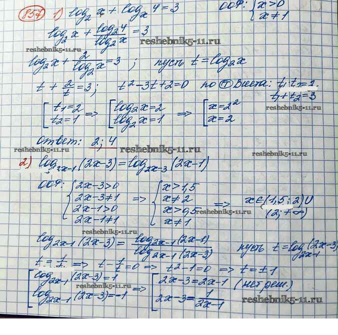 Готовая домашняя работа с ответами по Алгебре за 10 класс Колягин, Ткачёва, Федорова, Шабунин Учебник Базовый и углубленный уровень Просвещение 2017 ФГОС - Упражнения 857