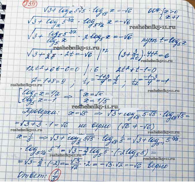 Готовая домашняя работа с ответами по Алгебре за 10 класс Колягин, Ткачёва, Федорова, Шабунин Учебник Базовый и углубленный уровень Просвещение 2017 ФГОС - Упражнения 859