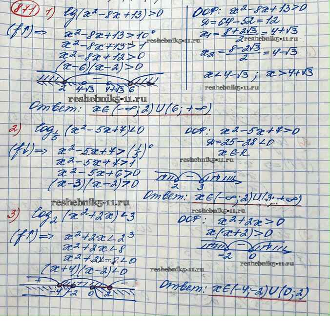 Готовая домашняя работа с ответами по Алгебре за 10 класс Колягин, Ткачёва, Федорова, Шабунин Учебник Базовый и углубленный уровень Просвещение 2017 ФГОС - Упражнения 871