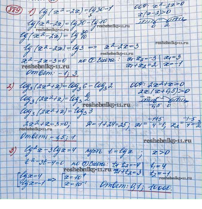 Готовая домашняя работа с ответами по Алгебре за 10 класс Колягин, Ткачёва, Федорова, Шабунин Учебник Базовый и углубленный уровень Просвещение 2017 ФГОС - Упражнения 889