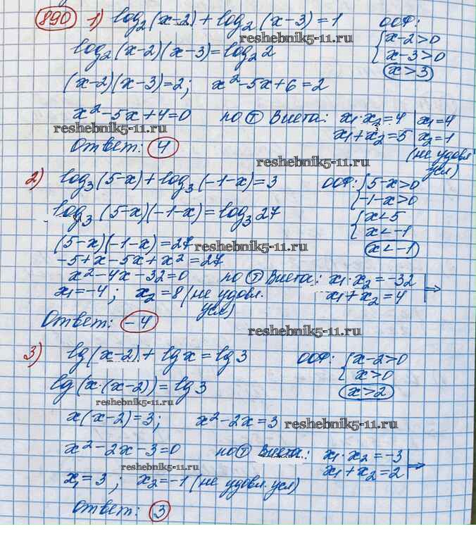 Готовая домашняя работа с ответами по Алгебре за 10 класс Колягин, Ткачёва, Федорова, Шабунин Учебник Базовый и углубленный уровень Просвещение 2017 ФГОС - Упражнения 890