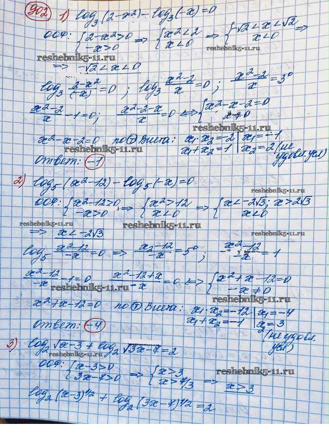 Готовая домашняя работа с ответами по Алгебре за 10 класс Колягин, Ткачёва, Федорова, Шабунин Учебник Базовый и углубленный уровень Просвещение 2017 ФГОС - Упражнения 902