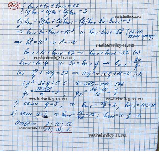 Готовая домашняя работа с ответами по Алгебре за 10 класс Колягин, Ткачёва, Федорова, Шабунин Учебник Базовый и углубленный уровень Просвещение 2017 ФГОС - Упражнения 912