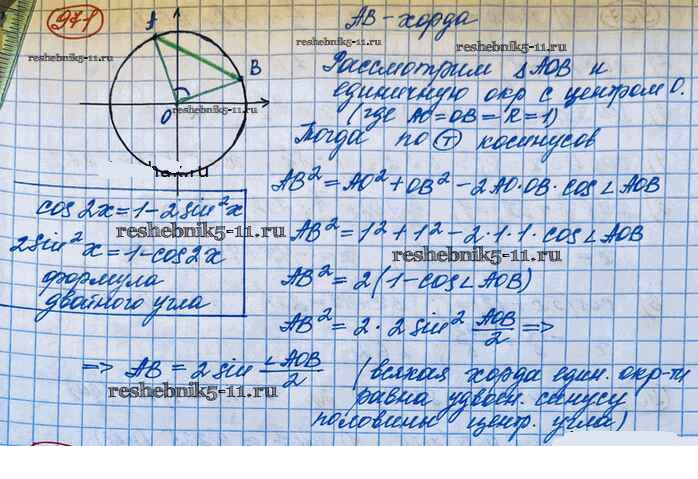 Готовая домашняя работа с ответами по Алгебре за 10 класс Колягин, Ткачёва, Федорова, Шабунин Учебник Базовый и углубленный уровень Просвещение 2017 ФГОС - Упражнения 971