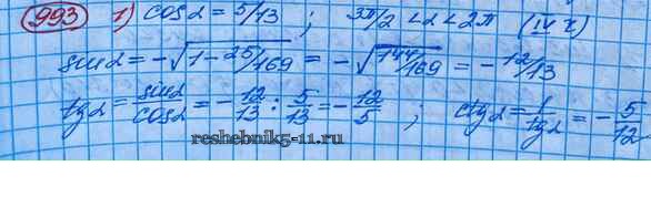 Готовая домашняя работа с ответами по Алгебре за 10 класс Колягин, Ткачёва, Федорова, Шабунин Учебник Базовый и углубленный уровень Просвещение 2017 ФГОС - Упражнения 993