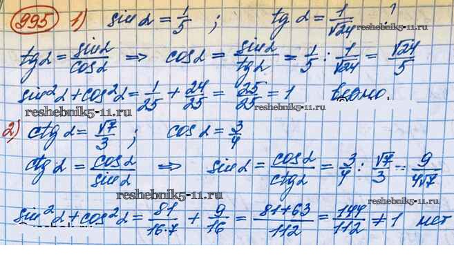 Готовая домашняя работа с ответами по Алгебре за 10 класс Колягин, Ткачёва, Федорова, Шабунин Учебник Базовый и углубленный уровень Просвещение 2017 ФГОС - Упражнения 995