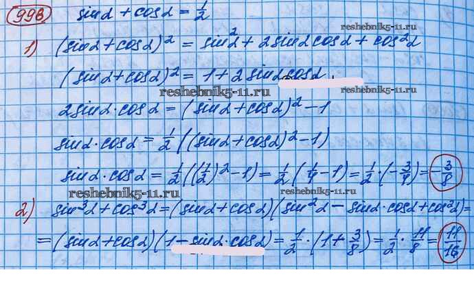 Готовая домашняя работа с ответами по Алгебре за 10 класс Колягин, Ткачёва, Федорова, Шабунин Учебник Базовый и углубленный уровень Просвещение 2017 ФГОС - Упражнения 998