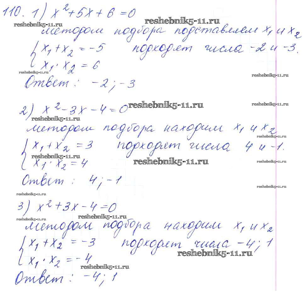 Готовая домашняя работа с ответами по Алгебре за 10 класс Колягин, Ткачёва, Федорова, Шабунин Учебник Базовый и углубленный уровень Просвещение 2017 ФГОС - Упражнения 110