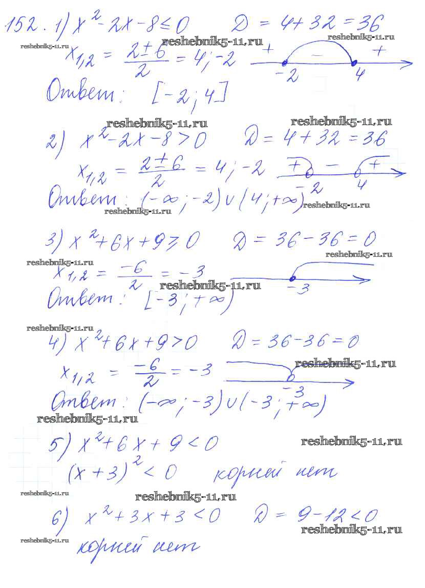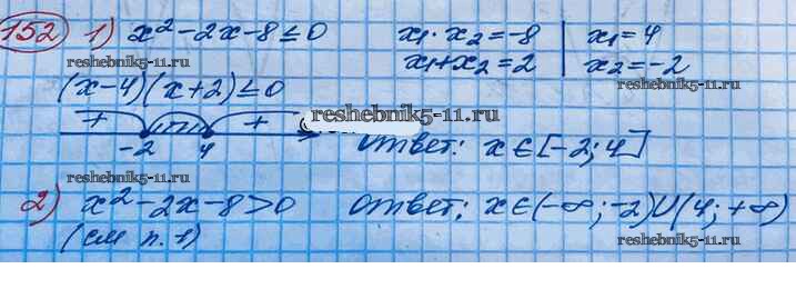 Готовая домашняя работа с ответами по Алгебре за 10 класс Колягин, Ткачёва, Федорова, Шабунин Учебник Базовый и углубленный уровень Просвещение 2017 ФГОС - Упражнения 152
