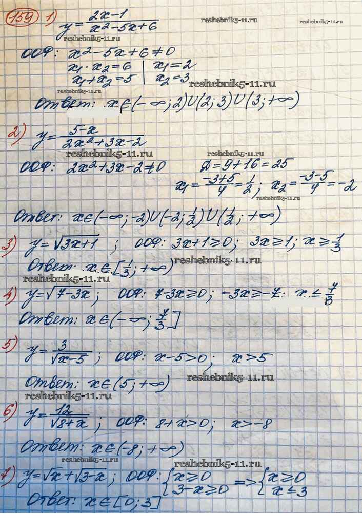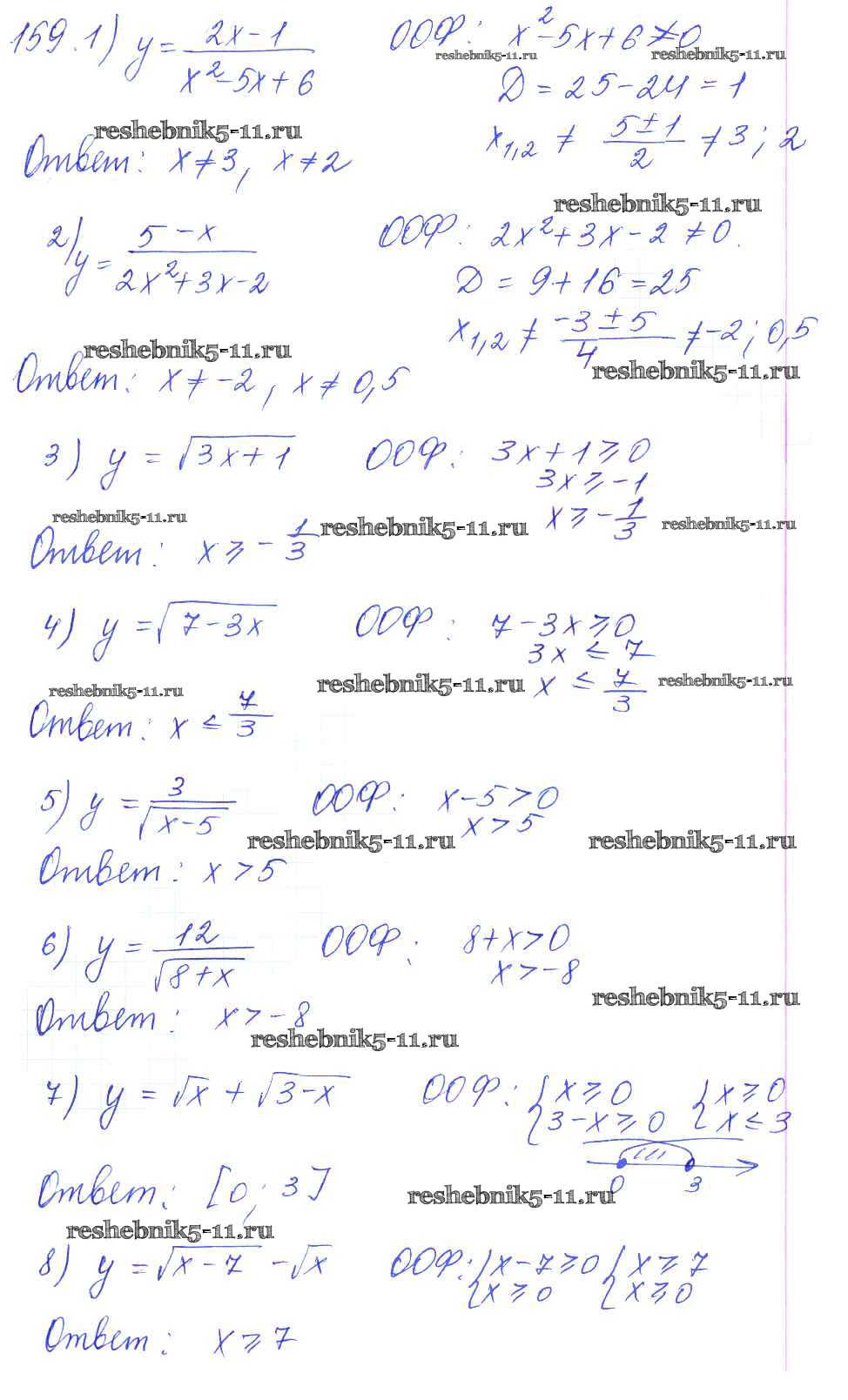 Готовая домашняя работа с ответами по Алгебре за 10 класс Колягин, Ткачёва, Федорова, Шабунин Учебник Базовый и углубленный уровень Просвещение 2017 ФГОС - Упражнения 159