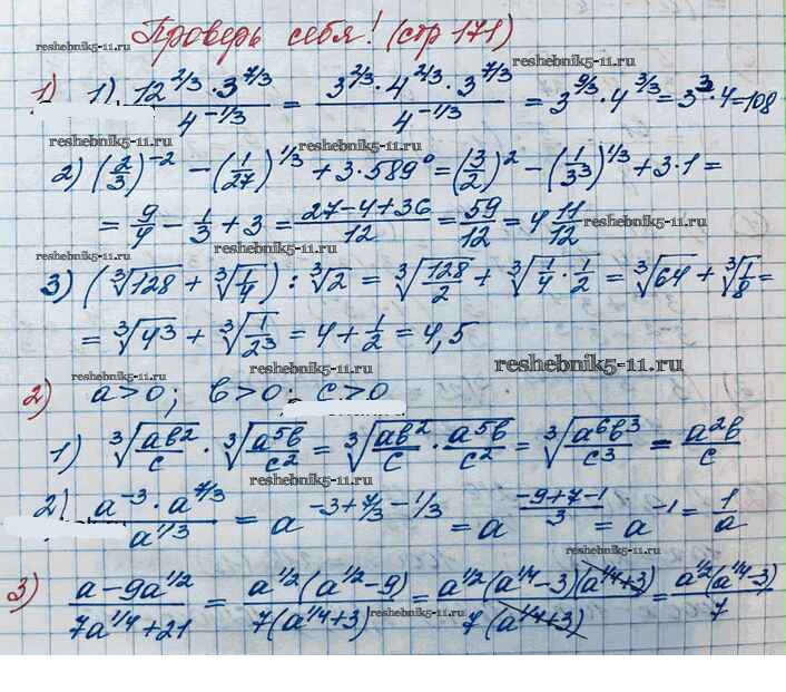 Готовая домашняя работа с ответами по Алгебре за 10 класс Колягин, Ткачёва, Федорова, Шабунин Учебник Базовый и углубленный уровень Просвещение 2017 ФГОС - Проверь себя 4. стр. 171