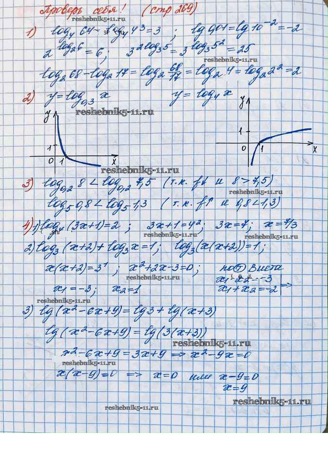 Готовая домашняя работа с ответами по Алгебре за 10 класс Колягин, Ткачёва, Федорова, Шабунин Учебник Базовый и углубленный уровень Просвещение 2017 ФГОС - Проверь себя 7. стр. 269