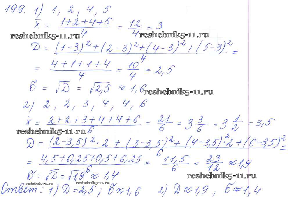 Готовая домашняя работа с ответами по Алгебре за 10 класс Колягин, Ткачёва, Федорова, Шабунин Учебник Базовый и углубленный уровень Просвещение 2017 ФГОС - Упражнения 199