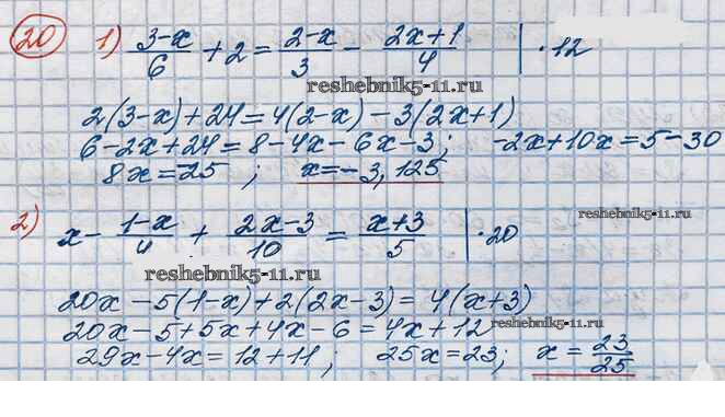 Готовая домашняя работа с ответами по Алгебре за 10 класс Колягин, Ткачёва, Федорова, Шабунин Учебник Базовый и углубленный уровень Просвещение 2017 ФГОС - Упражнения 20