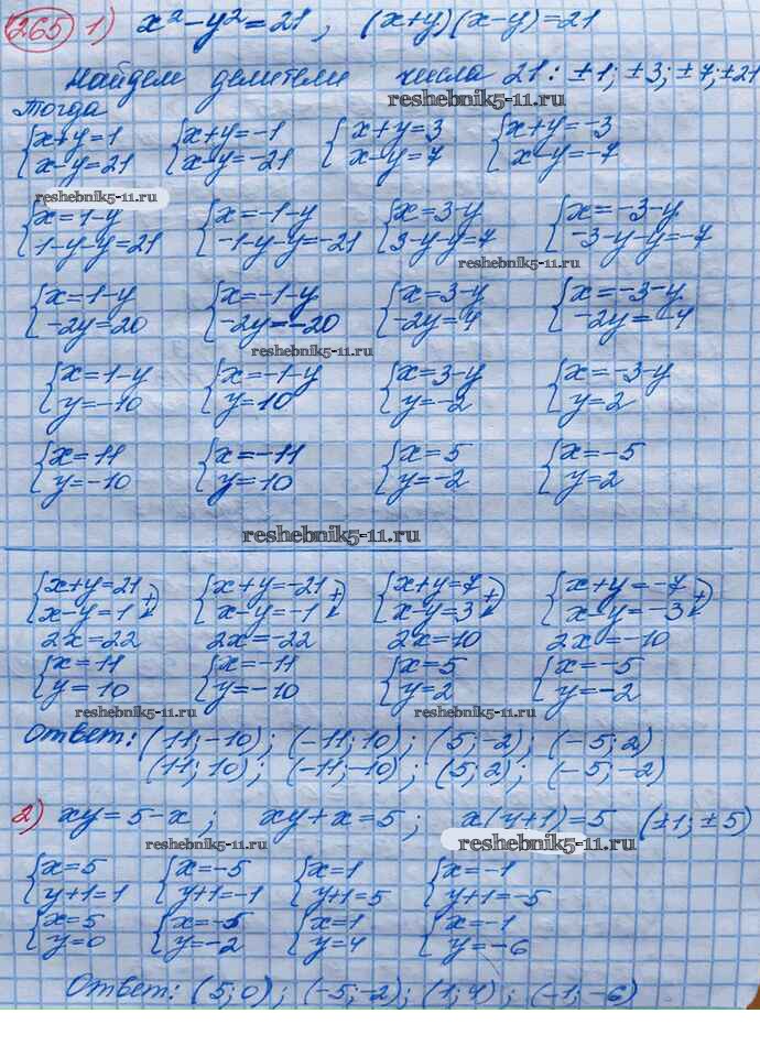 Готовая домашняя работа с ответами по Алгебре за 10 класс Колягин, Ткачёва, Федорова, Шабунин Учебник Базовый и углубленный уровень Просвещение 2017 ФГОС - Упражнения 265