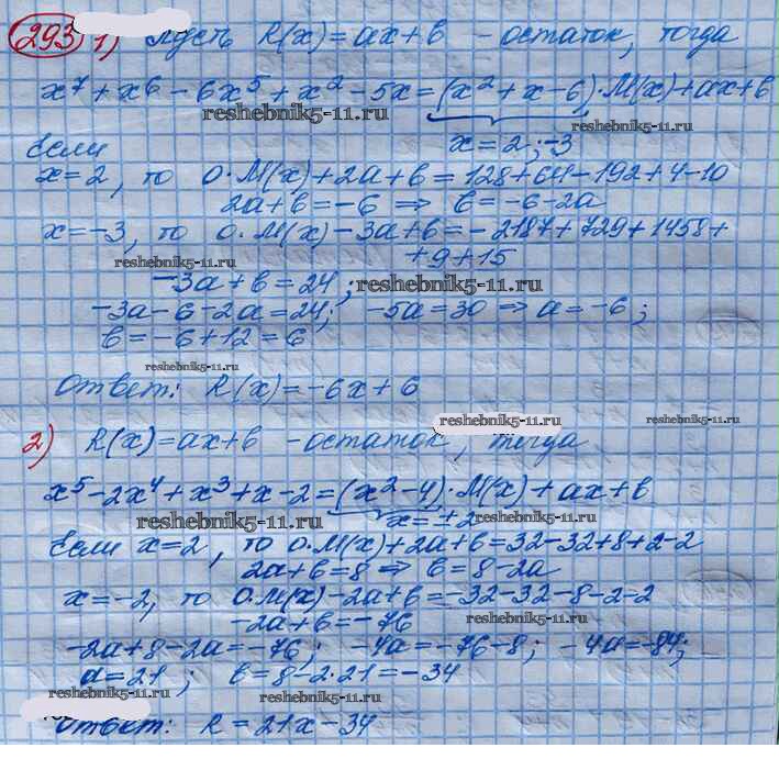Готовая домашняя работа с ответами по Алгебре за 10 класс Колягин, Ткачёва, Федорова, Шабунин Учебник Базовый и углубленный уровень Просвещение 2017 ФГОС - Упражнения 293