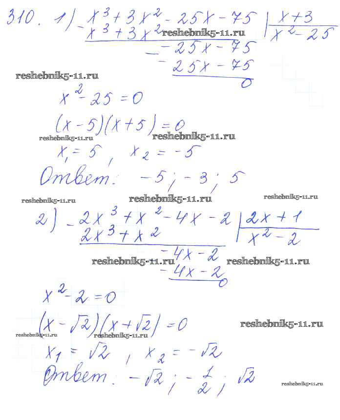 Готовая домашняя работа с ответами по Алгебре за 10 класс Колягин, Ткачёва, Федорова, Шабунин Учебник Базовый и углубленный уровень Просвещение 2017 ФГОС - Упражнения 310