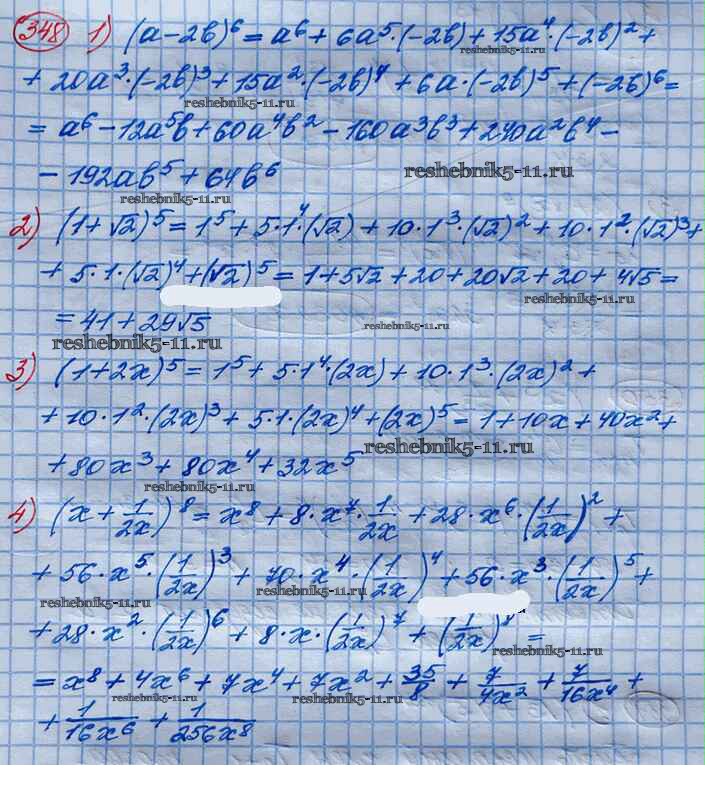 Готовая домашняя работа с ответами по Алгебре за 10 класс Колягин, Ткачёва, Федорова, Шабунин Учебник Базовый и углубленный уровень Просвещение 2017 ФГОС - Упражнения 348