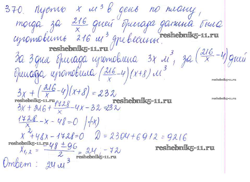 Готовая домашняя работа с ответами по Алгебре за 10 класс Колягин, Ткачёва, Федорова, Шабунин Учебник Базовый и углубленный уровень Просвещение 2017 ФГОС - Упражнения 370