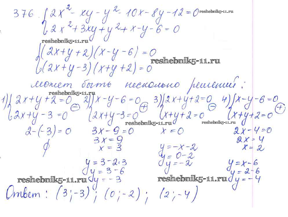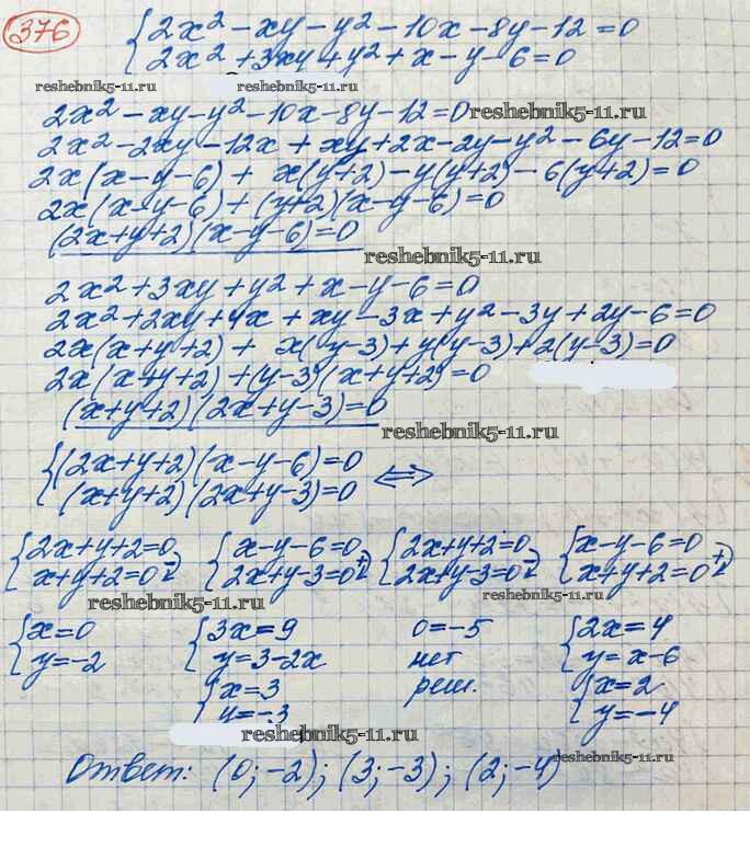 Готовая домашняя работа с ответами по Алгебре за 10 класс Колягин, Ткачёва, Федорова, Шабунин Учебник Базовый и углубленный уровень Просвещение 2017 ФГОС - Упражнения 376