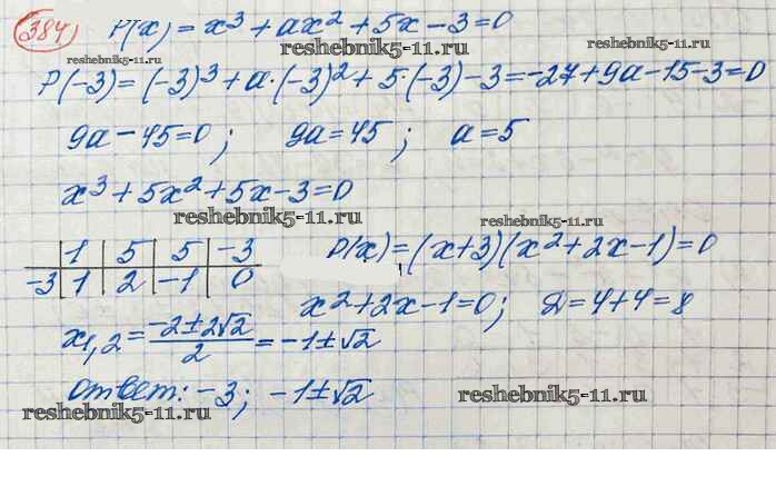 Готовая домашняя работа с ответами по Алгебре за 10 класс Колягин, Ткачёва, Федорова, Шабунин Учебник Базовый и углубленный уровень Просвещение 2017 ФГОС - Упражнения 384