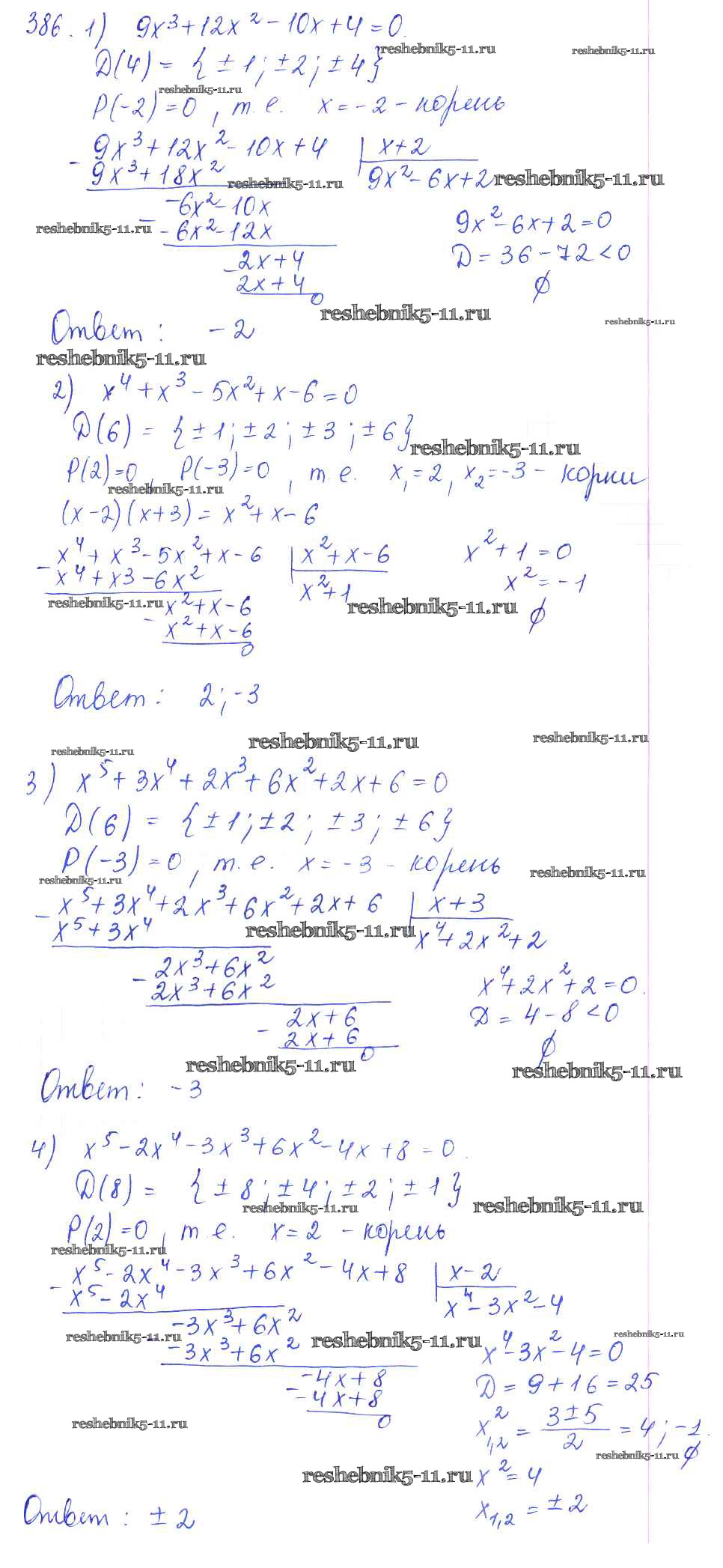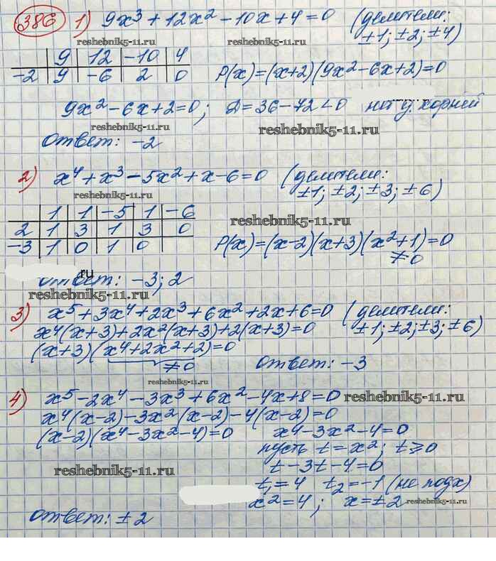 Готовая домашняя работа с ответами по Алгебре за 10 класс Колягин, Ткачёва, Федорова, Шабунин Учебник Базовый и углубленный уровень Просвещение 2017 ФГОС - Упражнения 386