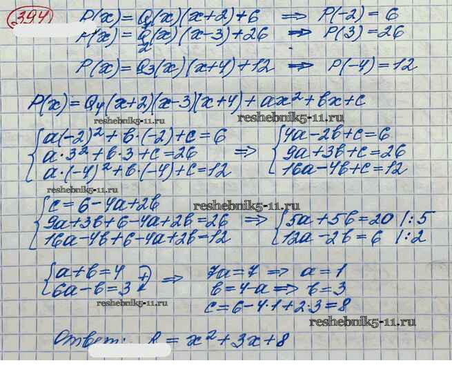Готовая домашняя работа с ответами по Алгебре за 10 класс Колягин, Ткачёва, Федорова, Шабунин Учебник Базовый и углубленный уровень Просвещение 2017 ФГОС - Упражнения 394