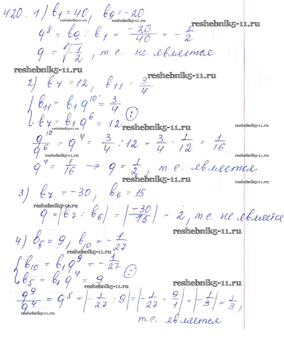 Готовая домашняя работа с ответами по Алгебре за 10 класс Колягин, Ткачёва, Федорова, Шабунин Учебник Базовый и углубленный уровень Просвещение 2017 ФГОС - Упражнения 420