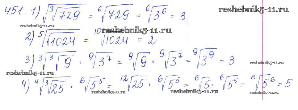 Готовая домашняя работа с ответами по Алгебре за 10 класс Колягин, Ткачёва, Федорова, Шабунин Учебник Базовый и углубленный уровень Просвещение 2017 ФГОС - Упражнения 451