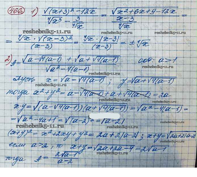 Готовая домашняя работа с ответами по Алгебре за 10 класс Колягин, Ткачёва, Федорова, Шабунин Учебник Базовый и углубленный уровень Просвещение 2017 ФГОС - Упражнения 466