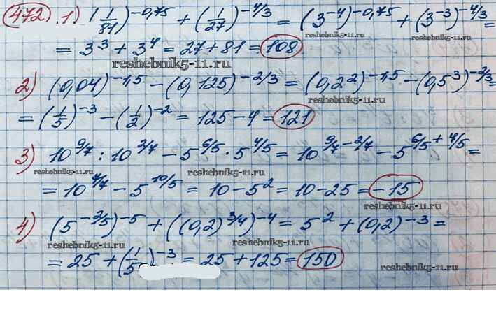 Готовая домашняя работа с ответами по Алгебре за 10 класс Колягин, Ткачёва, Федорова, Шабунин Учебник Базовый и углубленный уровень Просвещение 2017 ФГОС - Упражнения 472