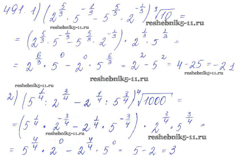 Готовая домашняя работа с ответами по Алгебре за 10 класс Колягин, Ткачёва, Федорова, Шабунин Учебник Базовый и углубленный уровень Просвещение 2017 ФГОС - Упражнения 491