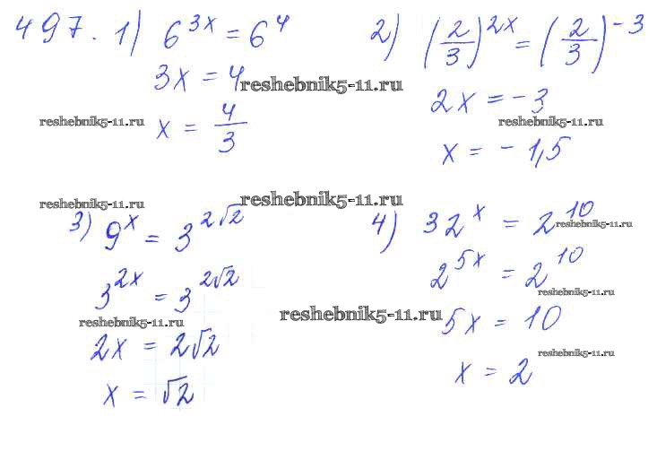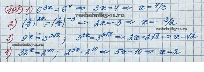 Готовая домашняя работа с ответами по Алгебре за 10 класс Колягин, Ткачёва, Федорова, Шабунин Учебник Базовый и углубленный уровень Просвещение 2017 ФГОС - Упражнения 497