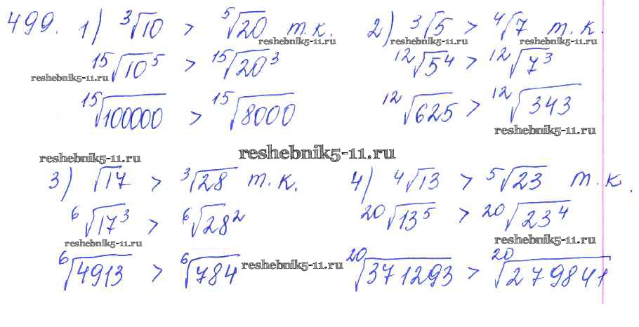Готовая домашняя работа с ответами по Алгебре за 10 класс Колягин, Ткачёва, Федорова, Шабунин Учебник Базовый и углубленный уровень Просвещение 2017 ФГОС - Упражнения 499