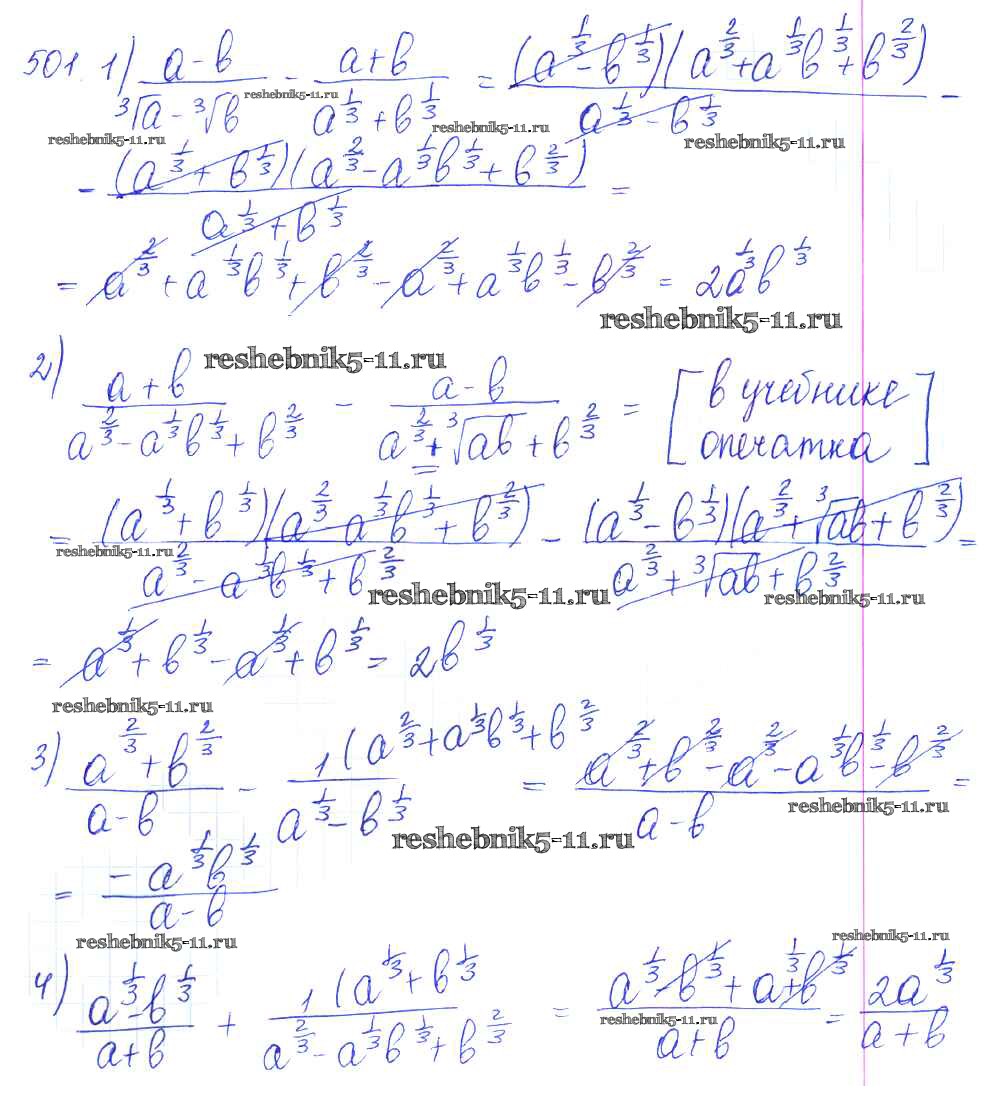 Готовая домашняя работа с ответами по Алгебре за 10 класс Колягин, Ткачёва, Федорова, Шабунин Учебник Базовый и углубленный уровень Просвещение 2017 ФГОС - Упражнения 501