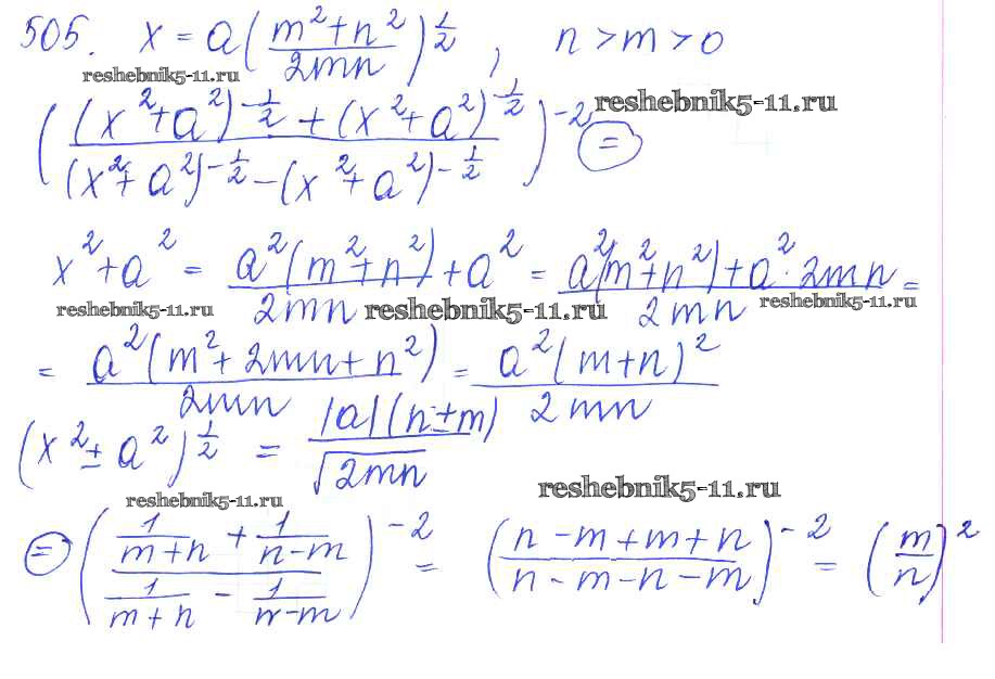 Готовая домашняя работа с ответами по Алгебре за 10 класс Колягин, Ткачёва, Федорова, Шабунин Учебник Базовый и углубленный уровень Просвещение 2017 ФГОС - Упражнения 505