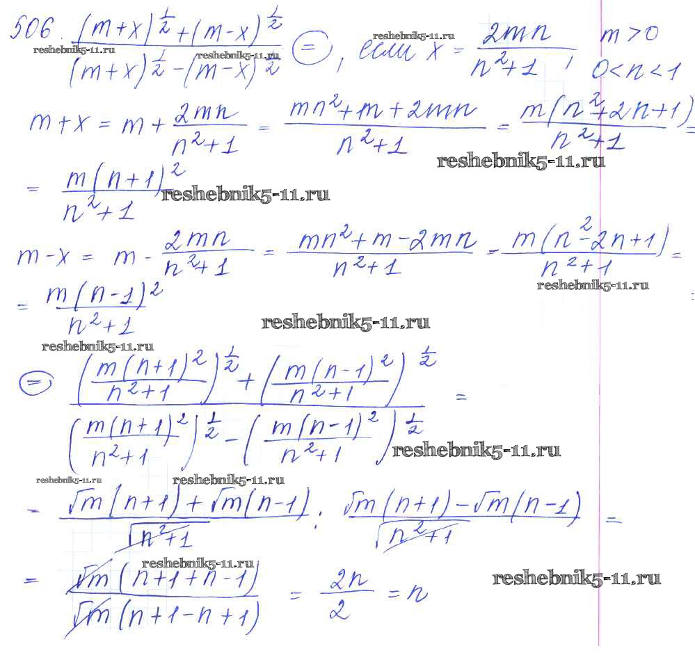 Готовая домашняя работа с ответами по Алгебре за 10 класс Колягин, Ткачёва, Федорова, Шабунин Учебник Базовый и углубленный уровень Просвещение 2017 ФГОС - Упражнения 506