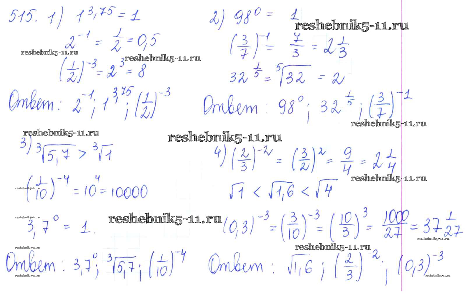 Готовая домашняя работа с ответами по Алгебре за 10 класс Колягин, Ткачёва, Федорова, Шабунин Учебник Базовый и углубленный уровень Просвещение 2017 ФГОС - Упражнения 515