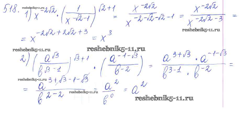 Готовая домашняя работа с ответами по Алгебре за 10 класс Колягин, Ткачёва, Федорова, Шабунин Учебник Базовый и углубленный уровень Просвещение 2017 ФГОС - Упражнения 518