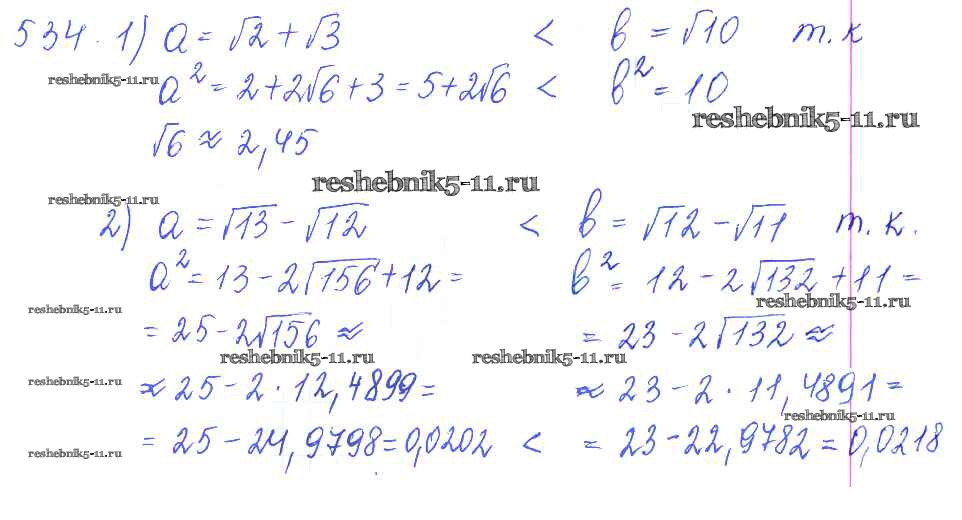 Готовая домашняя работа с ответами по Алгебре за 10 класс Колягин, Ткачёва, Федорова, Шабунин Учебник Базовый и углубленный уровень Просвещение 2017 ФГОС - Упражнения 534